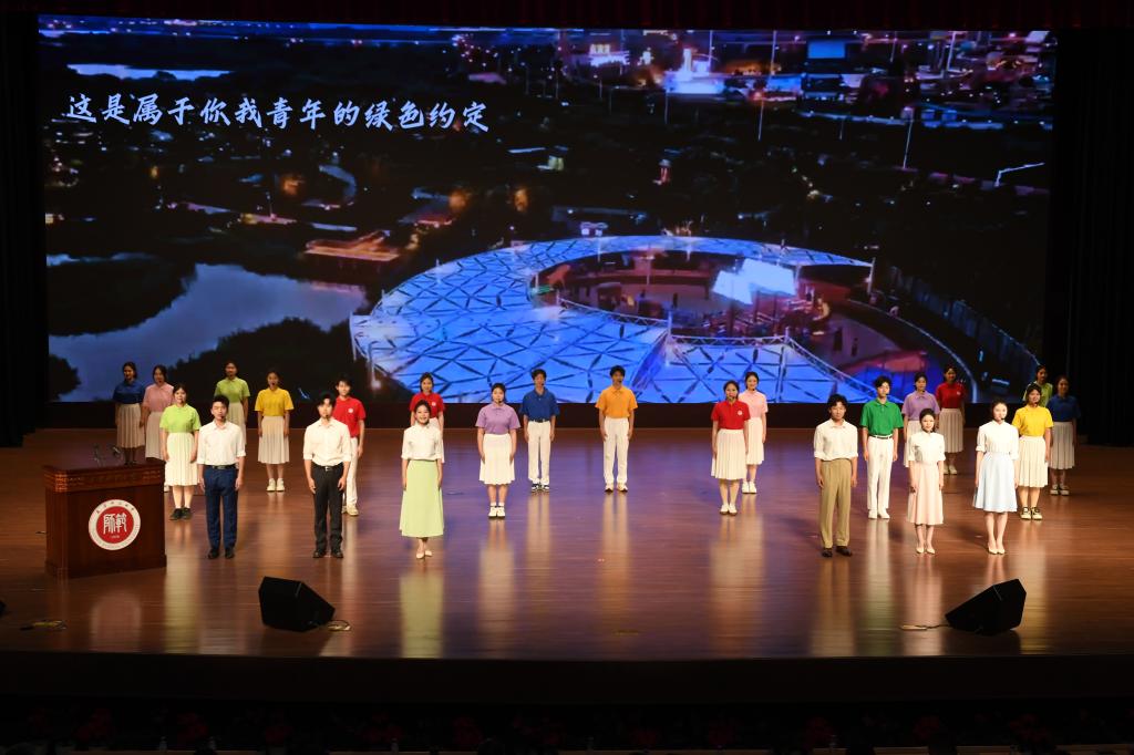 美丽中国,天津先行。开场主题生态环境科普宣传片充分展现了绿美津城建设的生动画卷。天津大学花博然,河北工业大学王泽晨,0033990威尼斯徐梓淇、靳安然、吕薇等同学围绕科技创新、绿色生态、科普宣讲、绿色实践等方面开展“智绘生态 绿美津城”主题联讲。“让天津的绿浪,涌动成智慧的脉搏!让中国的答卷,书写人类文明的华章!”我校新闻传播学院学生代表以主题表演诵激昂展现津门学子以绿色实践为课堂、以科创项目为舞台,投身绿美天津、智慧天津、生态天津的使命与担当。活动现场,全体观众通过手机与大屏幕实时互动,为绿色生长助力蓄能,共同启动2025年天津市生态环境科技周暨“大学生在行动”环保科普活动,将整场氛围推向高潮。
