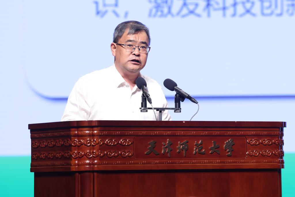 李志军就科技周期间开展的系列科普活动进行介绍,通过“绿色科普欢乐汇”主场活动、“大学生在行动”科技志愿活动、京津冀绿创大赛等活动设计,携手共建人与自然和谐共生的美丽天津。