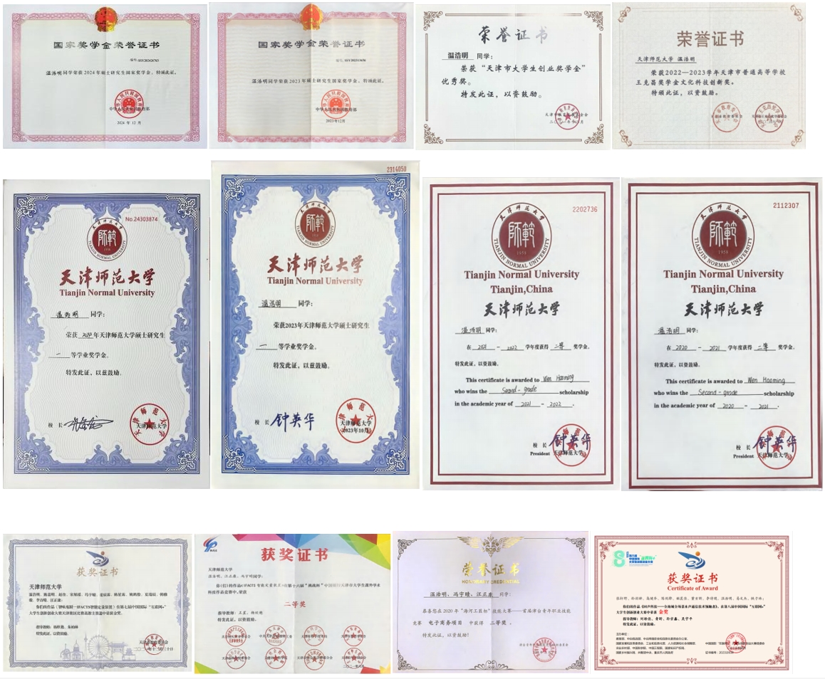 这份踏实让温浩明在学业路上收获颇丰:两次国家奖学金、一次王克昌奖学金文化科技创新奖、三次研究生学业奖学金和连续三年的专业第一,记录着每一个深夜处理实验数据的时光。
