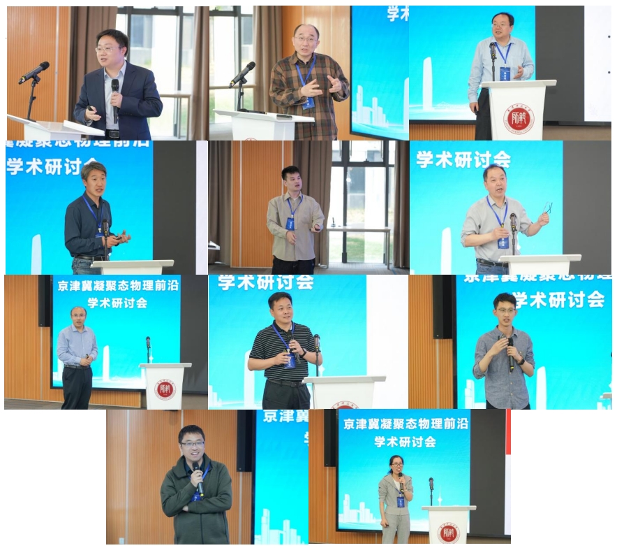 学术报告环节,来自京津冀地区的专家学者们围绕凝聚态物理领域的前沿问题展开深入探讨。北京大学乔宾教授、中国人民大学卢仲毅教授、北京理工大学姚裕贵教授、燕山大学田广军教授、河北师范大学齐士凡教授、天津大学李志青教授、河北工业大学刘国栋教授、燕山大学王明利教授以及0033990威尼斯教师郭嘉玮、张禧征、刘飞飞分别从大型激光装置在模拟天体现象中的应用、非共线磁体和交错磁体的研究进展、单分子体系的电输运和光学特性、光声双模压缩态的新方法、颗粒体系的独特电子结构、拓扑材料在催化剂中的应用、生物微结构在SERS技术中的潜力、机器学习在量子动力学模拟中的应用、量子自旋系统的磁化行为、新型超构表面设计方案等方面进行了分享。