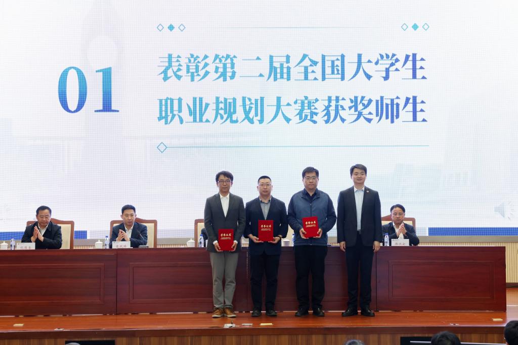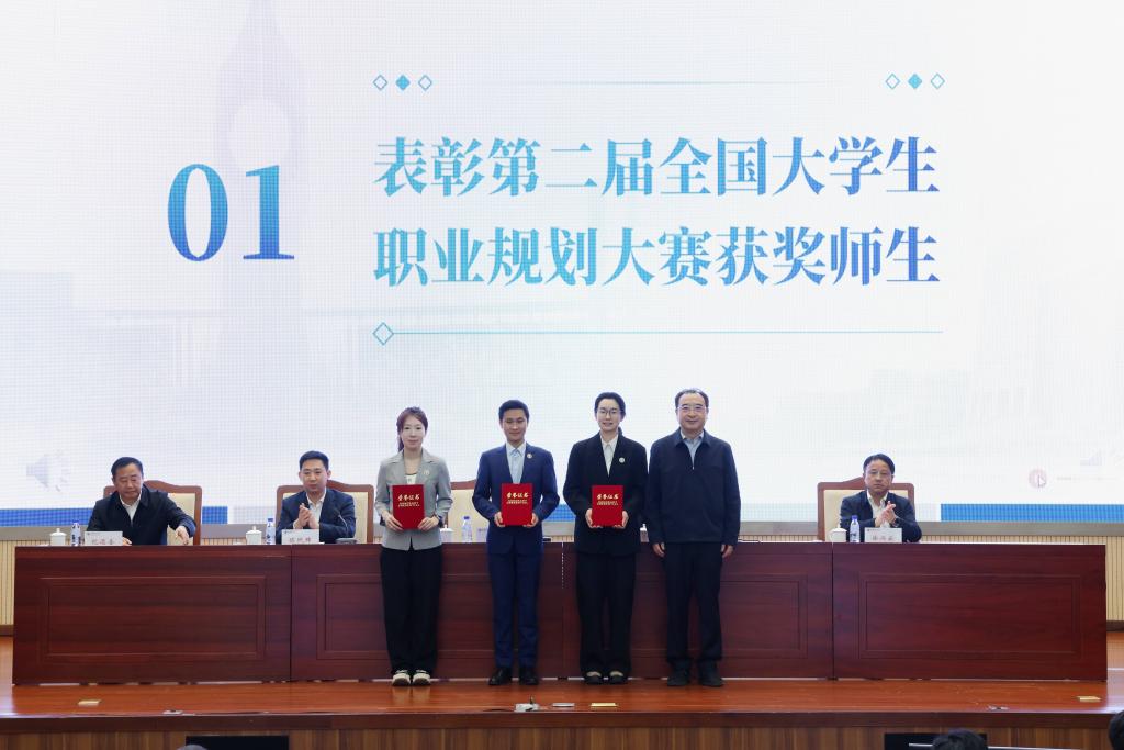 会上,校领导为第二届全国大学生职业规划大赛获奖选手及指导教师代表颁发证书。计算机与信息工程学院2022级软件工程专业本科生王佳雯、心理学部2021级应用心理学(师范)专业本科生曾芝程、政治与行政学院2023级政府治理与公共政策专业硕士研究生扈馨予依次上台展示。教育学部、法学院、管理学院、美术与设计学院、计算机与信息工程学院主要负责同志围绕学院典型特色做法进行交流发言。