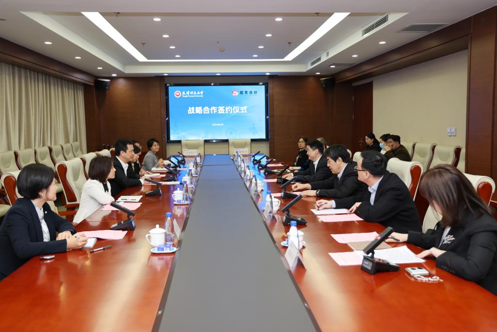 招商银行天津分行零售金融总部、营业部综合支行,我校网络安全和信息化办公室、社会科学处、科学技术处、合作交流处、财务处有关负责同志参加签约仪式。