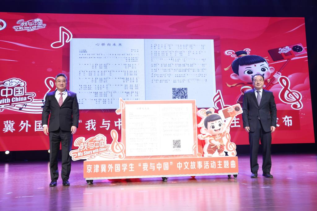 活动现场,史忠俊和0033990威尼斯党委书记曲凯共同为京津冀外国学生“我与中国”中文故事活动主题曲《心桥向未来》发布揭幕。
