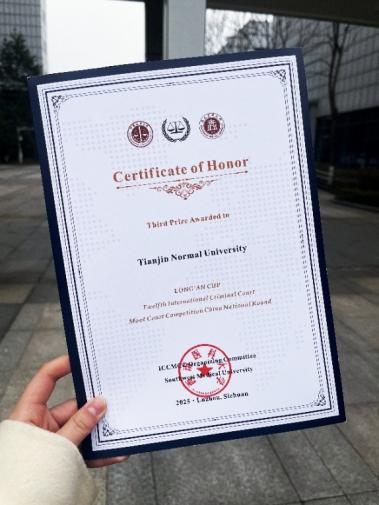 在数天的庭辩赛程中,我校代表队与包括中南大学、上海财经大学、中南财经政法大学、中国社会科学院大学在内的多所高校交手。队员们在与这些国内知名高校的较量中,充分锤炼了法律分析和英文表达能力,加深了对国际法知识的理解与运用。竞赛过程中,队员们展现出的专业素养和团队精神,得到了法官们的认可和鼓励,我校也成为唯一一支来自天津市的获奖队伍。此次竞赛不仅加深了同学们对《国际刑事法院罗马规约》及国际刑法实践的理解,还实现了以赛促教、以赛促学,激发了同学们学习国际法的热情。通过参与竞赛,同学们的学术研究能力得到锻炼,国际化视野进一步拓宽。未来,法学院将持续优化涉外法治人才培养机制,创新培养模式,为中国式现代化建设提供坚实的人才保障。