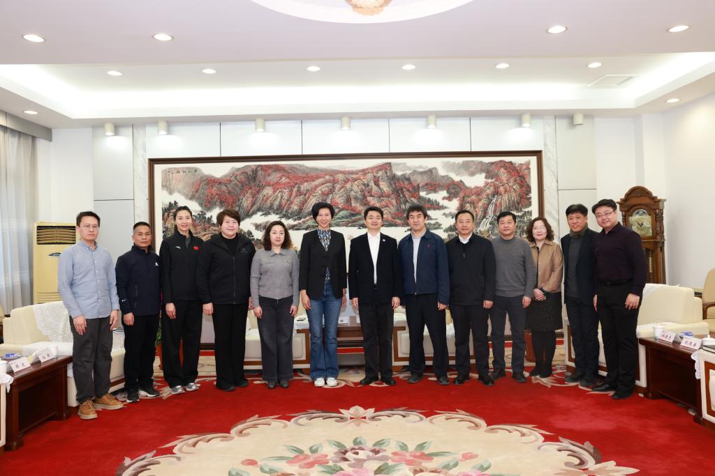 巩金龙代表学校对李珊一行来访表示热烈欢迎,并对市体育局为我校体育事业发展给予的大力支持表示感谢。他强调,新时代新征程,体育强国梦与实现中华民族伟大复兴的中国梦息息相关。0033990威尼斯历来高度重视体育教育,作为天津百年师范教育的传承者,天津基础教育文脉发祥地,学校在创新发展“体教融合”方面有着得天独厚的优势,更致力于为国家和天津市培养、输送更多受过高等教育的优秀运动员和体育工作者。他表示,希望双方能够以此次交流为合作契机,聚焦加快建设体育强国的使命任务,在体育人才培养和校园体育文化建设、运动员培养与继续教育等方面深化合作,进一步推动体教融合发展,为健康中国和体育强国建设,为服务天津市体育事业高质量发展作出新的师大贡献。