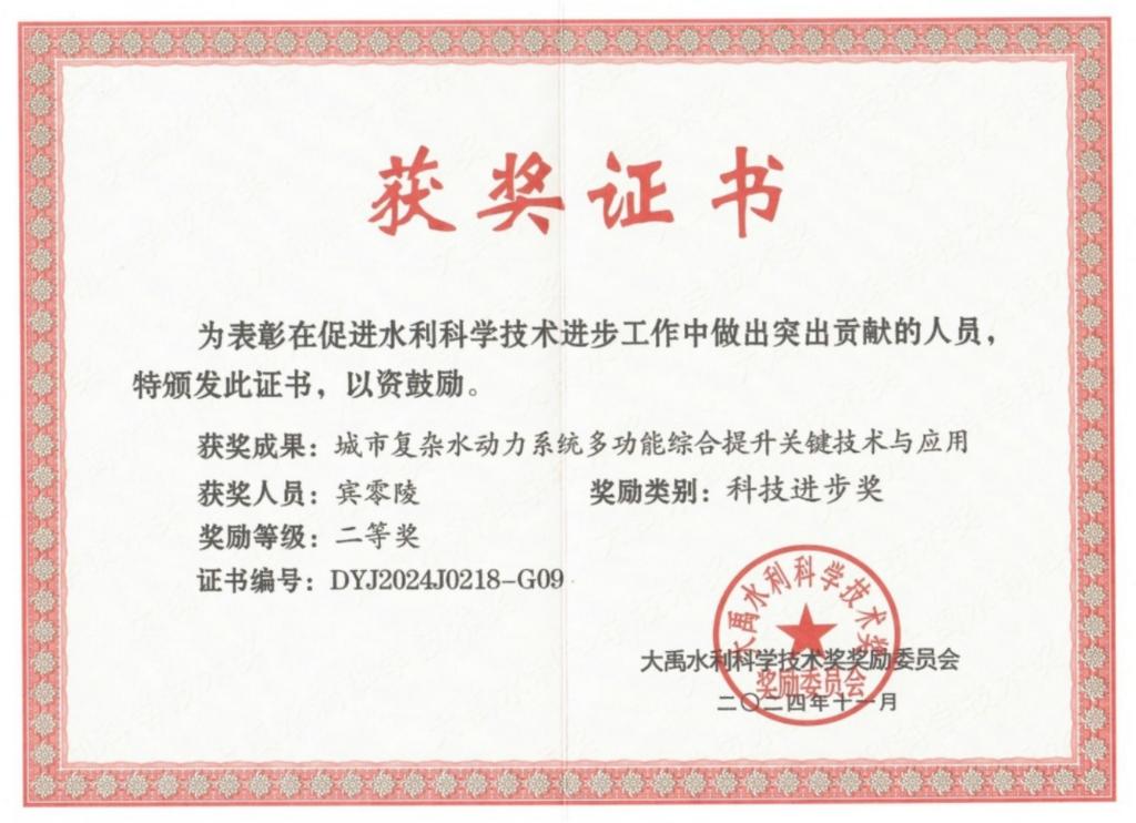 本站讯(通讯员 刘琳)近日,2024年度大禹水利科学技术奖(简称“大禹奖”)奖励结果发布。我校地理学部教师宾零陵参与完成的“城市复杂水动力系统多功能综合提升关键技术与应用”成果,荣获科技进步奖二等奖。