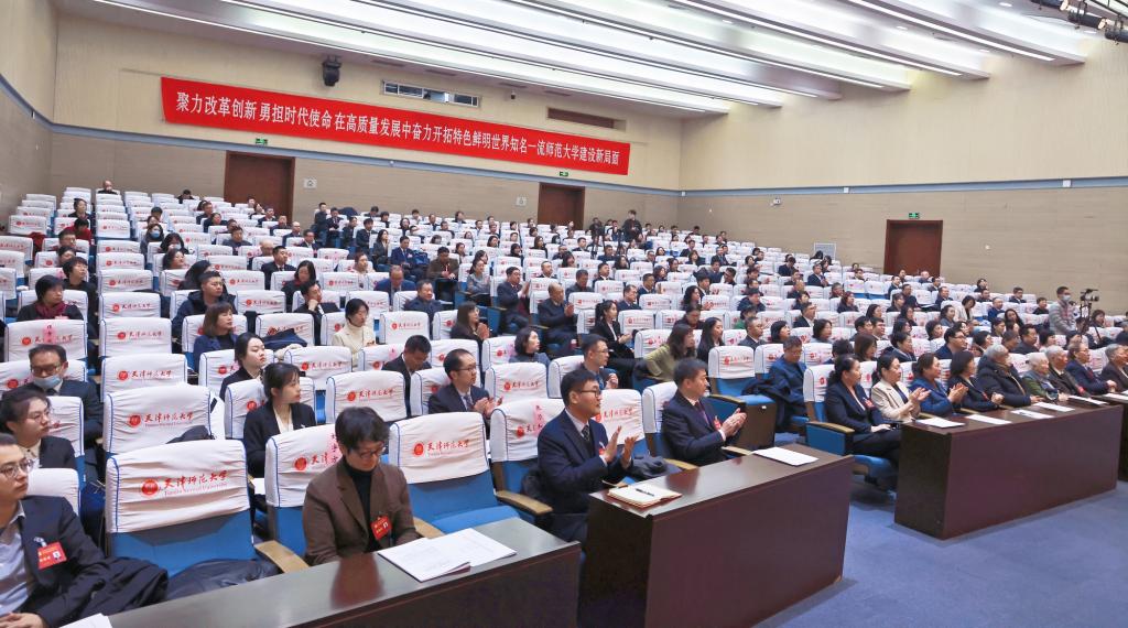 报告从七个方面部署了今后五年的发展任务和主要举措。要全面落实新时代立德树人工程,提高人才自主培养质量,构建具有鲜明师大特色的“三全育人”体系,创新卓越教师人才培养模式,深化拔尖人才培养改革,提高研究生培养质量和水平。要充分发挥学科建设龙头作用,塑造“双一流”建设新动能新优势,建设一流引领的顶尖学科体系,优化交叉融合的学科生态体系,数据赋能促进学科提质发展。要系统推进有组织科研,提升科研创新综合能力和水平,繁荣发展哲学社会科学研究,加强重大科技创新平台建设,推动有组织科研管理体制改革。要深入实施人才强校战略,打造高素质人才队伍,大力弘扬教育家精神,全方位引进、培育、用好人才,深化人事制度改革。要持续彰显教师教育优势特色,服务天津教育高质量发展,构建服务高质量基础教育师资体系,提升学校基础教育引领力和影响力,加强基础教育智库科学决策咨询。要全方位推进开放办学,深化高水平国际交流合作,拓展高质量国际合作渠道,构建国际教育开放新格局,推动来华留学教育提质增效。要统筹优化办学格局和治理体系,形成充满活力、富有效能的发展生态,高质高效推动校园建设,持续优化学校内部治理结构提升治理能力,广泛凝聚各方力量助力事业发展。