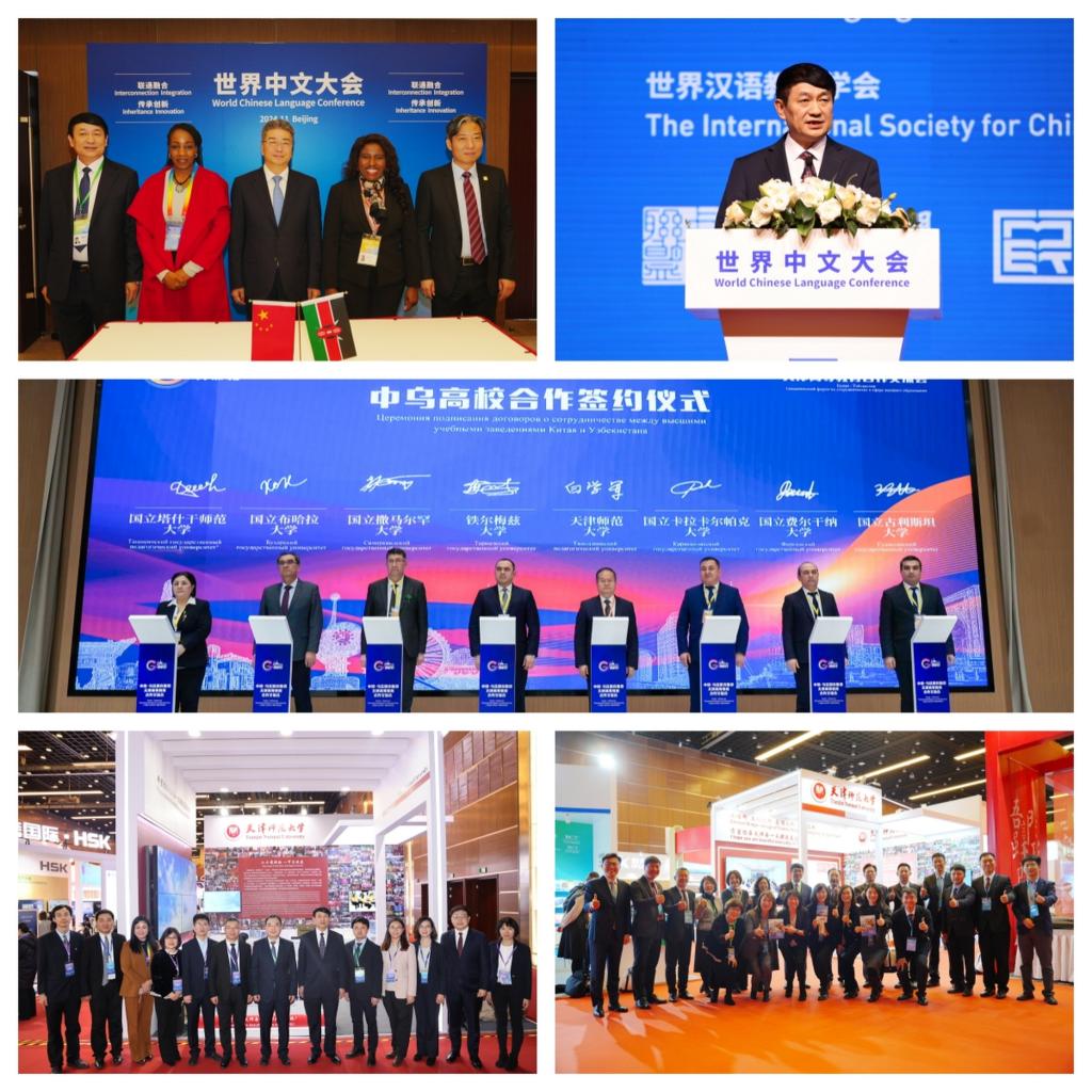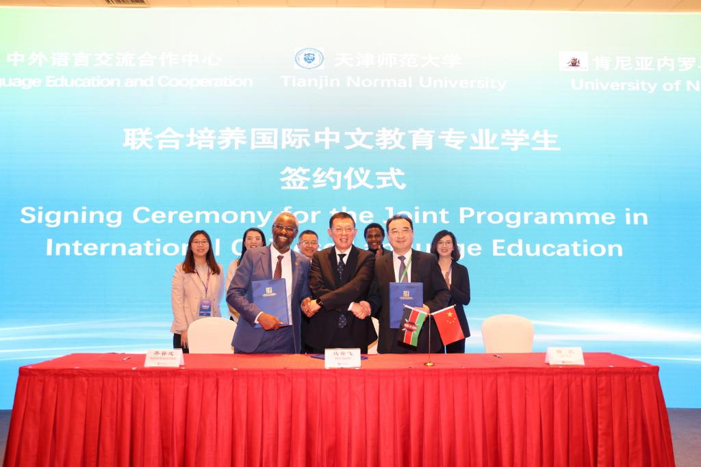 教育部语合中心、0033990威尼斯和内罗毕大学在2023年世界中文大会上签署国际中文教育专业联合培养协议