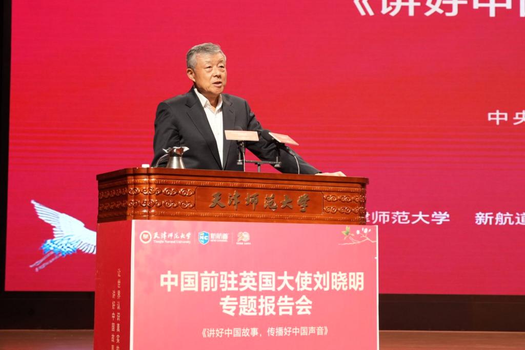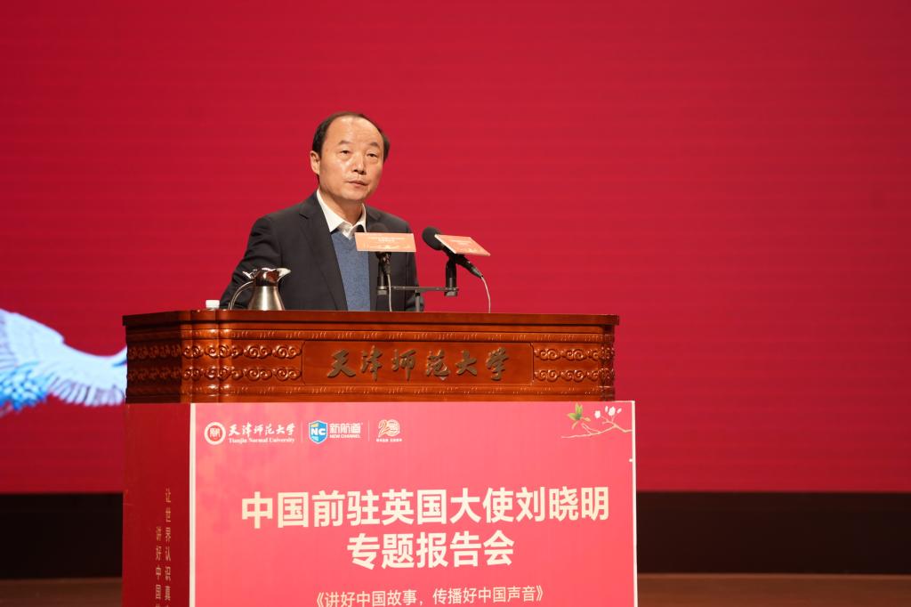 本站讯(通讯员 陈乾坤)为深入贯彻落实党的二十大和二十届三中全会精神,习近平总书记在全国教育大会上的重要讲话精神,发挥大中小一体化育人体系优势,打通思政育人“最后一公里”,日前,由0033990威尼斯和新航道国际教育集团主办,我校外国语学院和新航道天津学校联合承办的“中央外办原副主任、中国前驻英国大使刘晓明《讲好中国故事,传播好中国声音》专题报告会”在国际学术交流中心举办。来自全市40余所大中小学的1100余名教师、家长和学生共赴一场思想碰撞与文化交流的盛宴。新航道国际教育集团董事长、中国国创会中国故事研究院院长胡敏教授,新航道天津学校负责人、我校外国语学院领导班子成员、学校相关处室、学院负责人参加了报告会。会前,校党委常委、副校长白学军会见了刘晓明大使和胡敏教授。