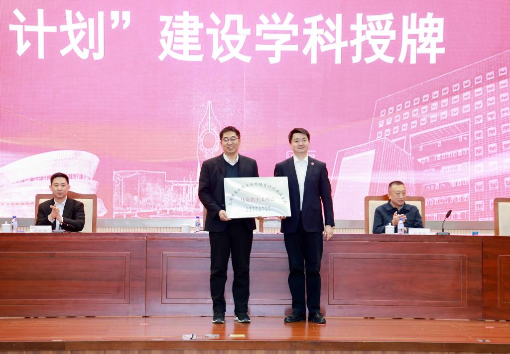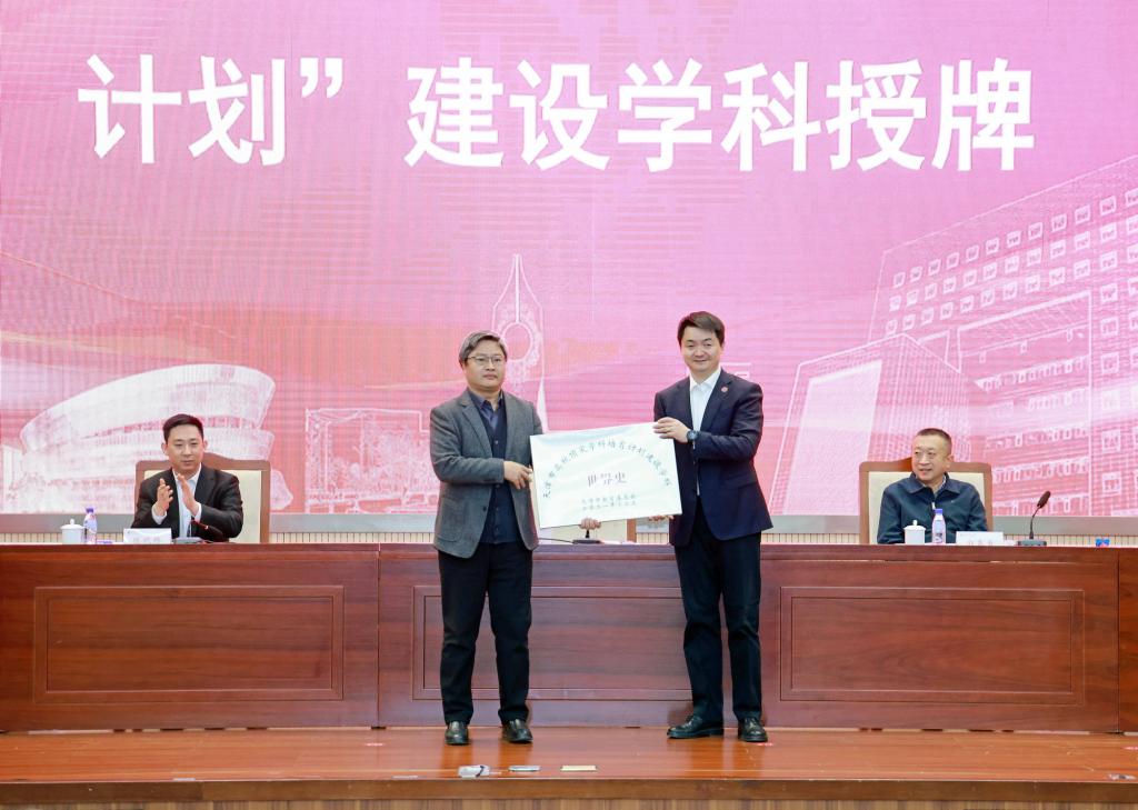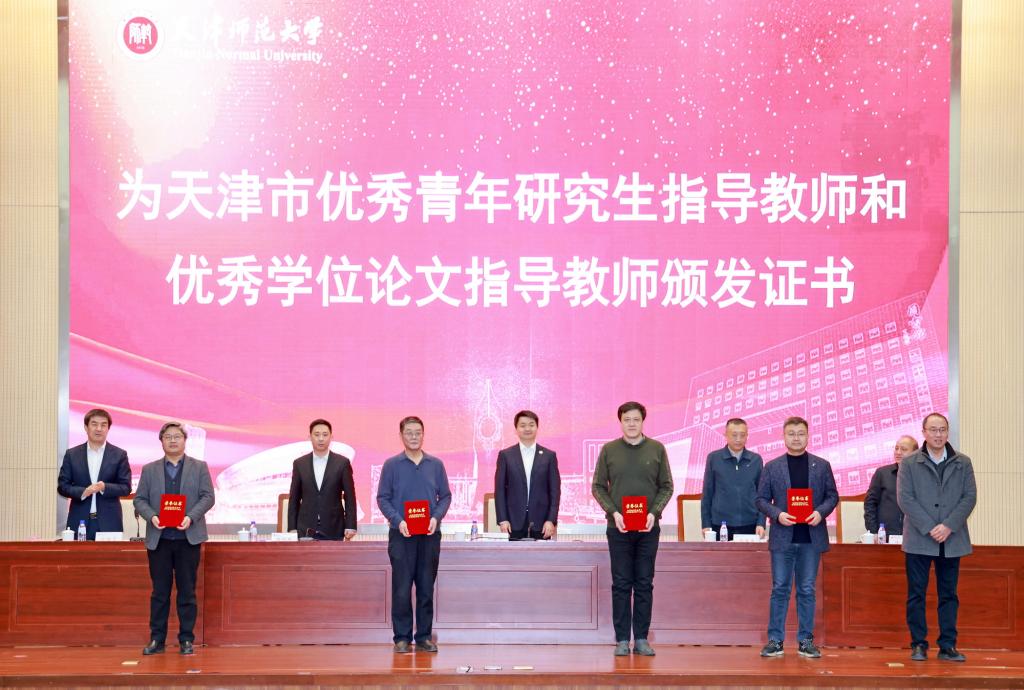 学校表彰在学科建设和研究生教育工作中取得重要成果的单位和个人。与会领导为2020、2024年新获批的博士学位授权点和“天津市顶尖学科培育计划”建设学科授牌,为2022年国家级、市级研究生教学成果奖获奖者、天津市优秀青年研究生指导教师、天津市优秀学位论文指导教师颁发证书。相关学科带头人递交《学科建设任务书》《学位点建设任务书》。研究生培养单位代表、研究生导师代表分别作典型发言。