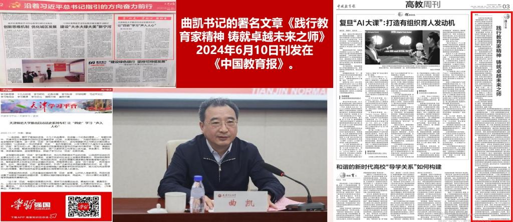 充分利用我校优势学科及专家资源,探索天津高校教师联合培养模式,扩大学校思想政治教育资源共享覆盖面,以“大思政”视野努力构建完善合力育人、协同育人的工作格局。学校作为活动发起方开展“学习贯彻落实全国教育大会精神—教育家精神铸魂强师实践行”三校联合活动,先后联合天津高校组织《“奋斗 坚守逆行”老中青三代高校人讲述师德精神传承故事》《深化新时代教育评价改革总体方案》学习解读、《大力弘扬教育家精神 培根铸魂树高尚师德》等8场专题云上公益讲座,影响覆盖全国范围,在相关领域发出天津师大声音,助力形成天津模式,产生良好社会影响,中国教师报、学习强国、天津日报、津云等多家主流媒体进行报道转载。