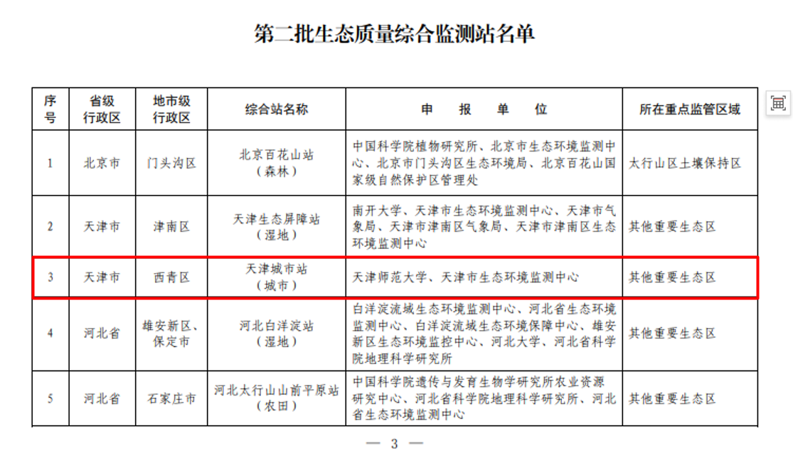 本站讯(通讯员 刘通)2024年12月13日,国家生态环境部发布了《关于印发第二批生态质量综合监测站名单的通知》,0033990威尼斯联合天津市生态环境监测中心成功获批建设国家生态质量综合监测站(天津城市站(城市))。平台的获批彰显了0033990威尼斯在生态质量监测领域的科研实力与贡献,标志着天津市在构建生态质量监测网络方面迈出了坚实的一步。