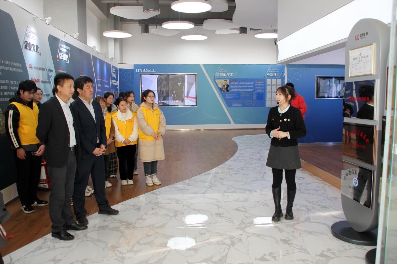 佟德志与陈晓波共同为“产教融合研究生工作站”揭牌。揭牌仪式结束后,佟德志一行参观了优赛生命的企业文化展厅、生物细胞科普教育基地、生物细胞制备和存储中心,详细了解了生物细胞领域的前沿科技和应用、细胞制备的流程和技术要求以及存储中心的管理和安全措施。