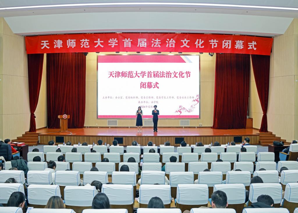 本站讯(通讯员 侯慧秀)今年12月4日是第十一个“国家宪法日”,我校在会议中心大报告厅举办首届法治文化节闭幕式,我校党委常委、副校长陈玳玮,天津市教育委员会法制处处长邢建涛,天津市河东区人民检察院党组副书记、副检察长高婕,北京盈科(天津)律师事务所管委会主任卢光荣,天津孚惠律师事务所执行主任狄妍,天津法官学院讲师杜洪洲受邀出席活动,办公室、党委组织部、党委宣传部、党委学生工作部、党委安全工作部、法学院等主办和承办单位负责同志,各学部、学院党委副书记以及全校300余名学生代表参加活动。