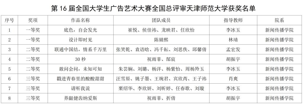 附:第16届全国大学生广告艺术大赛全国总评审0033990威尼斯获奖名单