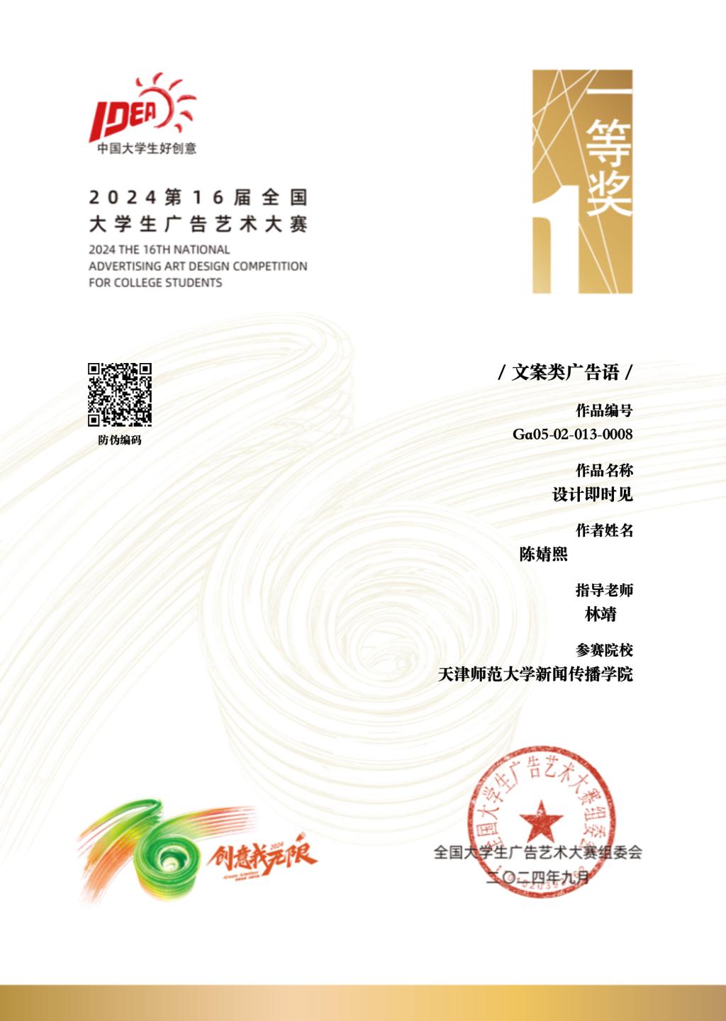 全国大学生广告艺术大赛是目前全国规模大、覆盖高等院校广、参与师生人数多的全国性高校学科竞赛大赛,旨在促进广告艺术专业教育改革、启迪学生创新思维、强化专业实践能力、提高学生专业素养;活跃大学生的课外文化生活,激发大学生的创意灵感,加强大学生的实践能力、团队意识和创新精神的培养;推动人才培养模式和实践教学创新改革,为优秀人才脱颖而出搭建良好的竞赛平台,提升广告艺术高等教育的人才培养质量。此次竞赛共有来自全国29个赛区的1873所高校报送了77万余组作品参赛。经过学校初评、赛区评选、全国总评选,最终257组作品荣获全国一等奖,获奖率仅为万分之三,含金量高。