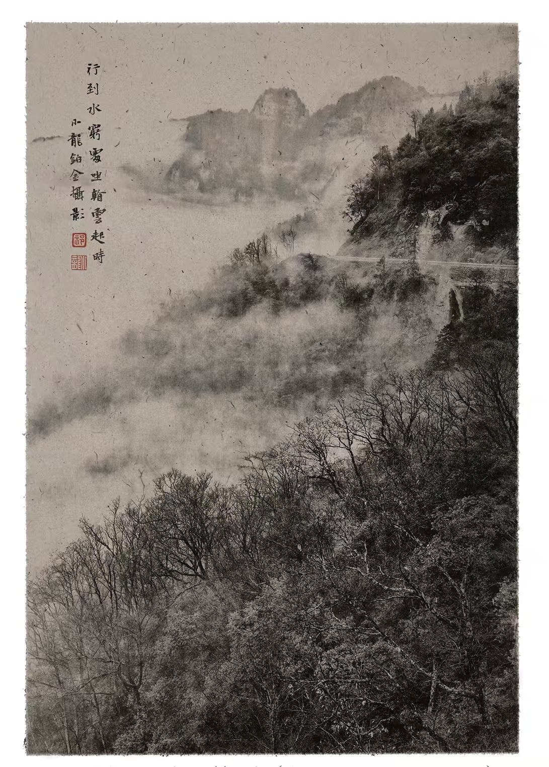 祁小龙此次获奖作品中,《山水生态水墨意趣》组照以古典铂金印相技法在宣纸和丝绢上呈现山水自然的生态之美,将中国传统水墨画的气韵与现代摄影技艺完美结合,展现了“绿水青山就是金山银山”理念下的壮丽生态景观;《青花色韵 寒暖多姿》组照则采用蓝晒印相工艺,赋予影像如青花瓷般的艺术质感,描绘了从北国冰雪到南方雨林的多样自然景观。这些作品既是对中国传统艺术语言的创新表达,也是对生态文明建设的深情礼赞。正如获奖评语所述:“从新闻摄影的一线实践者、整合传播者和学术研究者,到大画幅摄影和古典印相工艺的艺术探索者,再到摄影教育工作者,祁小龙以自身的转型,证实着当下摄影的跨界融合新趋势。他以凝视为中心,以更具沉思性的独特创作,深入探究摄影本体语言应用,其作品展示着中国传统山水美学的传承与创新,不仅巧妙结合传统书画媒介,表现着中国艺术的随类赋彩,气韵生动,更转化为对人与自然关系的深刻冥想。”
