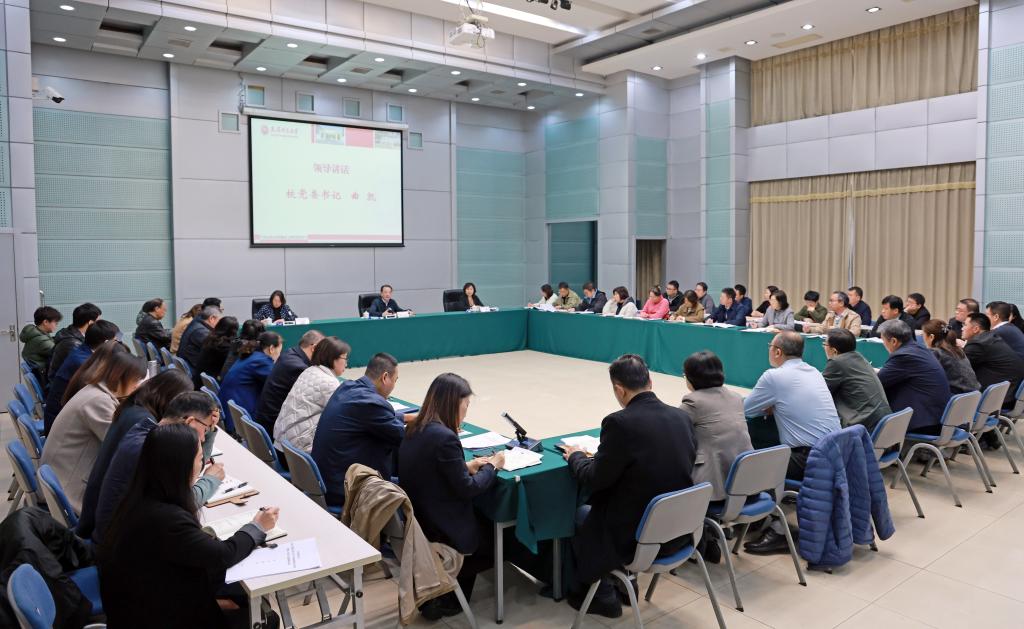 本站讯(通讯员 郭小玮)11月22日上午,我校首批干部赴天津大学学习实践锻炼总结交流会暨第二批学习实践锻炼启动会在办公楼一楼多功能厅举行。校党委书记曲凯出席会议并讲话。