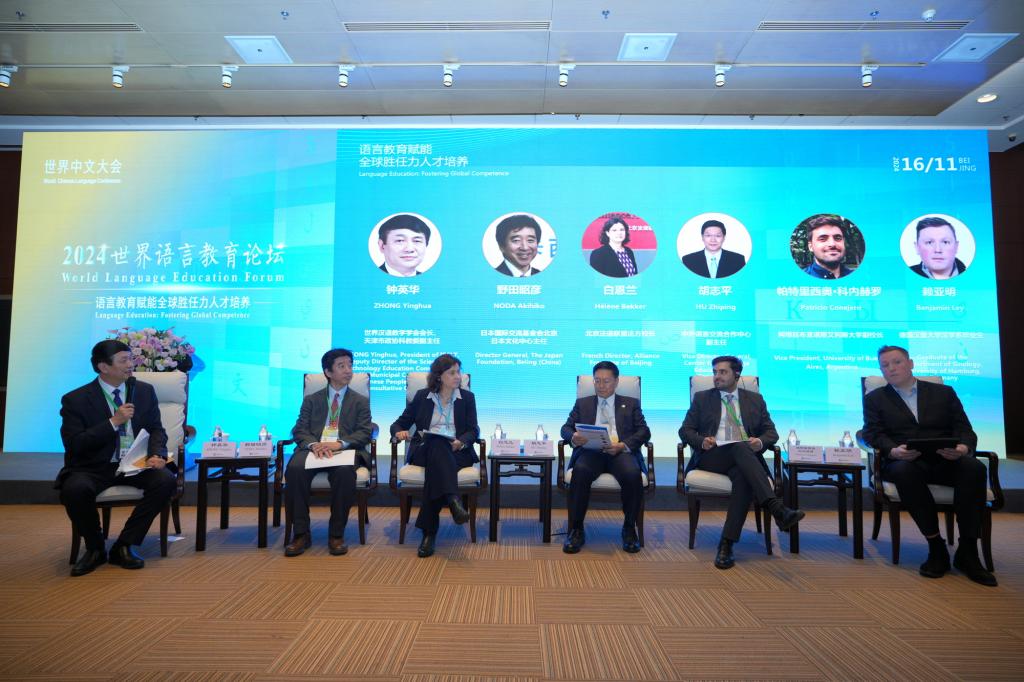 16日下午,钟英华受邀出席主持世界中文大会“2024世界语言教育论坛”。教育部中外语言交流合作中心副主任胡志平及来自日本、法国、阿根廷、德国等代表就语言文化推广应用情况进行交流分享。
