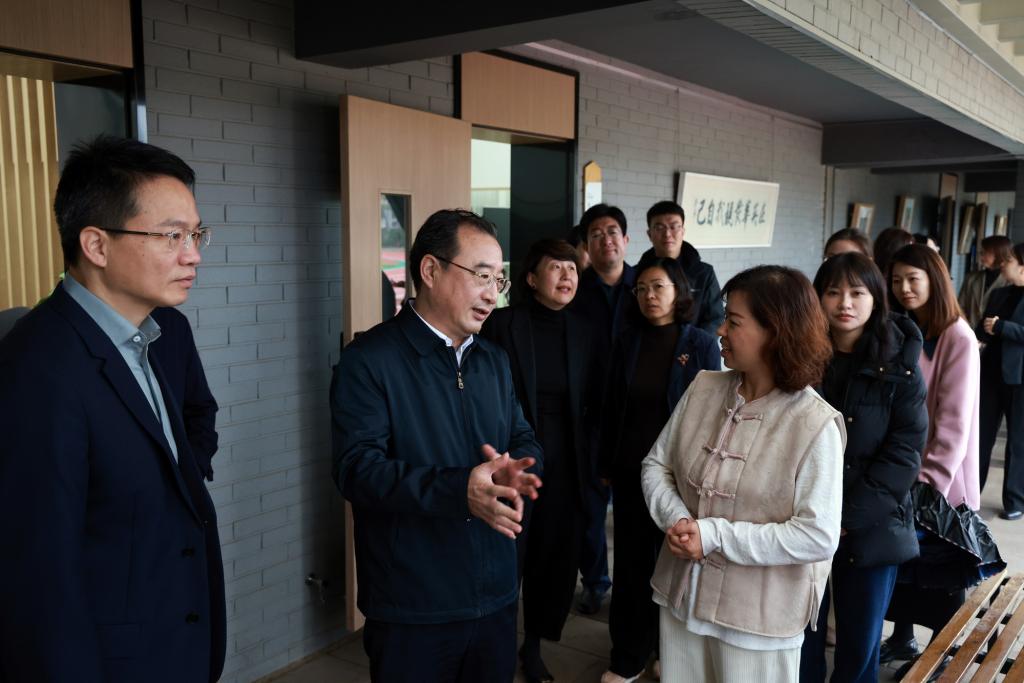 调研中,曲凯一行依次参观了英华实验学校英华屏、英华主题摄影展、E站通、实验小剧场、和顺书斋、创客教室以及少年科学院等多个教育教学场所,近距离感受英华实验学校聚焦学生综合素质,以满足学生个性特点与多样化需求为立足点进行多元化培养的育人理念。