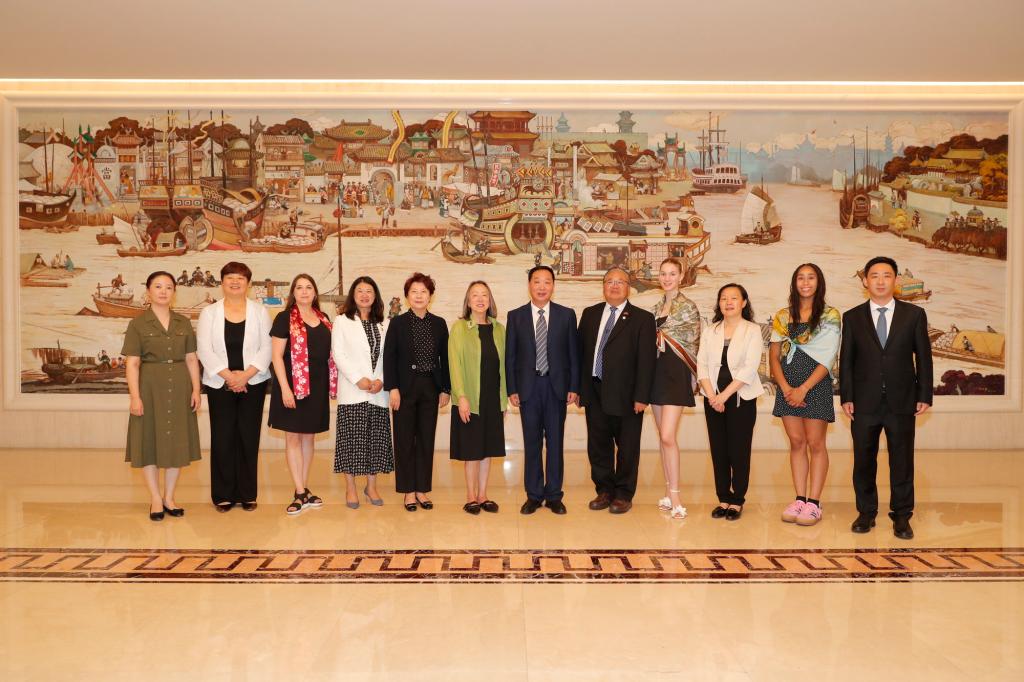 殷向杰首先向老朋友、美国俄勒冈州副州务卿谢丽尔·迈耶一行来访表示诚挚欢迎。他指出,此次迈耶副州务卿率青年艺术体操代表团来访,既以实际行动响应了习近平主席的号召,为中美友好架起了一座横跨太平洋的“友谊之桥”,也进一步丰富拓展了天津与俄勒冈州友城交流合作的广度和深度,为双方友好关系注入了新的正能量。希望下一个十年,双方继续以教育、体育、艺术为纽带,跨越国界,沟通民心,撰写中美人民友好交流的新篇章!