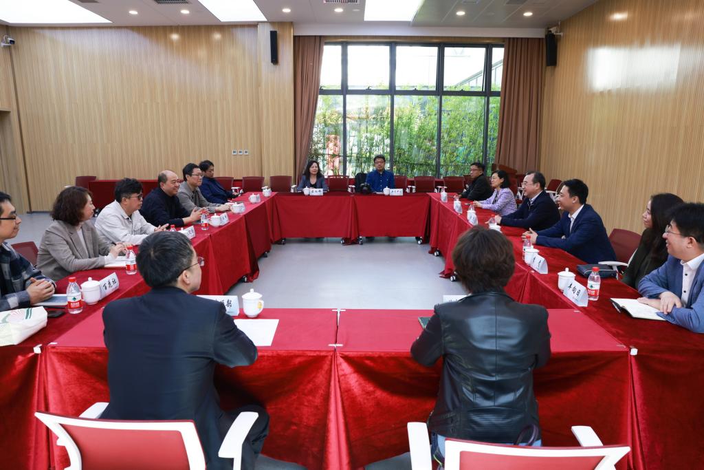 调研中,曲凯一行参观了天津数字出版产业园,与天津出版传媒集团就职校友代表共话学校发展。