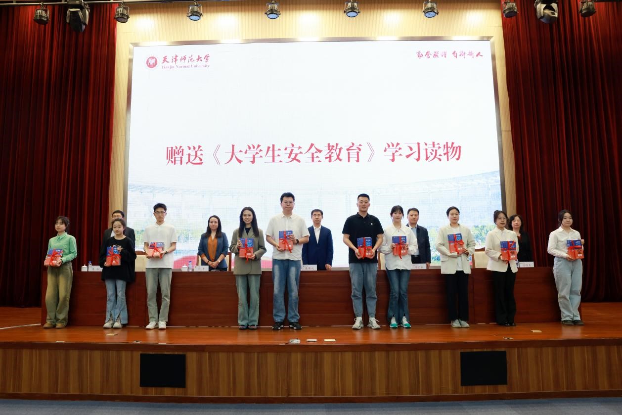 开班仪式上,与会领导老师为各学部(院)赠送了《大学生安全教育》教材,美术与设计学院美术教育专业研究生王昊辉同学代表安全委员发言,号召全体同学共同关注安全、参与安全、维护安全,让安全意识深入人心,让安全成为每个师大学子的自觉行动。