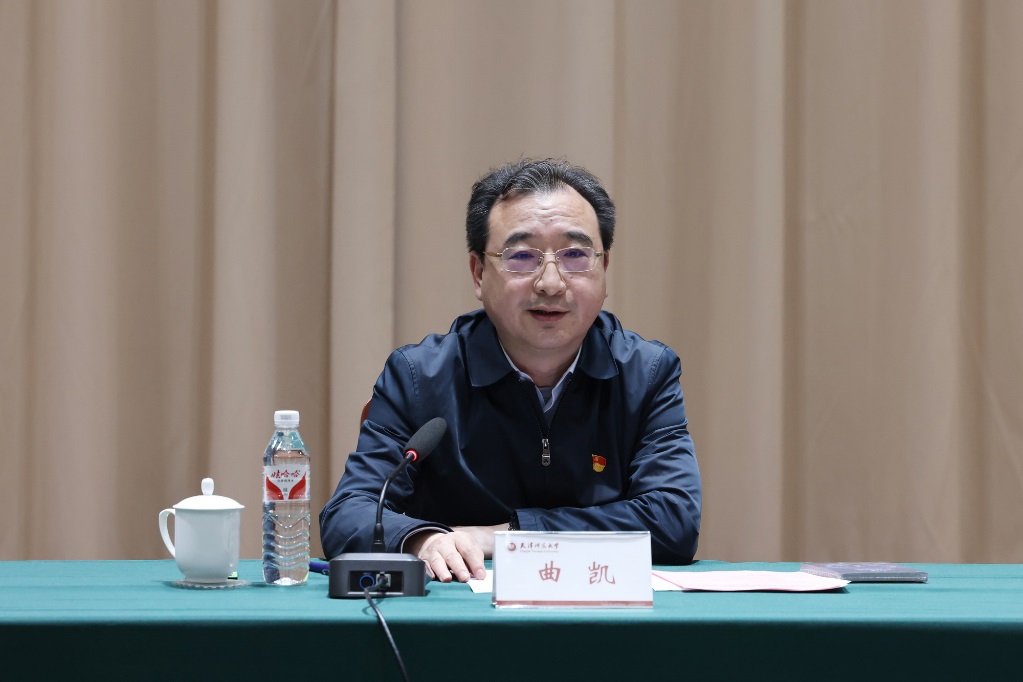 曲凯强调,同学们要切实把思想和行动高度统一到习近平总书记重要讲话精神上来,统一到党中央决策部署和市委工作要求上来,就必须明确把“学思想”放在第一位,全面学习领会习近平新时代中国特色社会主义思想的科学体系,做到整体把握、融会贯通。就必须要结合自身实际,深入学习、认真思考领悟习近平总书记对新征程上天津工作提出的总体要求和“四个善作善成”的重要要求。曲凯希望同学们牢记嘱托,夯实“以学铸魂,知行合一”的思想根基;干在实处,把习近平总书记的殷殷嘱托全面落实到增强志气、骨气、底气的学习科研和创新创业中,投身“教育强国,师大何为”的生动实践;勇担使命,胸怀“国之大者”,在学习实践各个方面作表率、当先锋,交出“久久为功,青春有为”的优秀答卷。他鼓励同学们要在“铸理想”上练苦功、在“树信念”上做真功、在“强能力”上下实功,将习近平总书记的殷殷嘱托、深厚情怀转化为砥砺奋进、笃定前行的动力,坚定不移听党话、跟党走,热爱求学的城市,了解天津、扎根天津、立业天津,用青春和汗水在奋力谱写中国式现代化天津篇章中展现师大担当、青年作为。