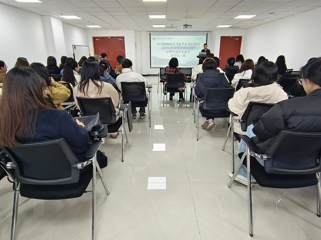 开学第一课聚焦“第一议题”制度落实,要求团学骨干们充分认识学习宣传贯彻习近平总书记视察天津重要讲话精神的重大意义,将学习宣传贯彻习近平总书记重要讲话精神作为当前和今后一个时期的首要政治任务,迅速掀起学习热潮,在学部落地生根、开花结果。学部党委副书记、纪委书记范晓锐嘱托在场同学,作为心理学部的团学骨干,要深刻领悟“两个确立”的决定性意义,增强“四个意识”,坚定“四个自信”,做到“两个维护”,充分认识到自己身上的责任和使命,发挥好桥梁纽带作用,珍惜学部宝贵资源,以学立身,矢志奋斗,努力成长成才。