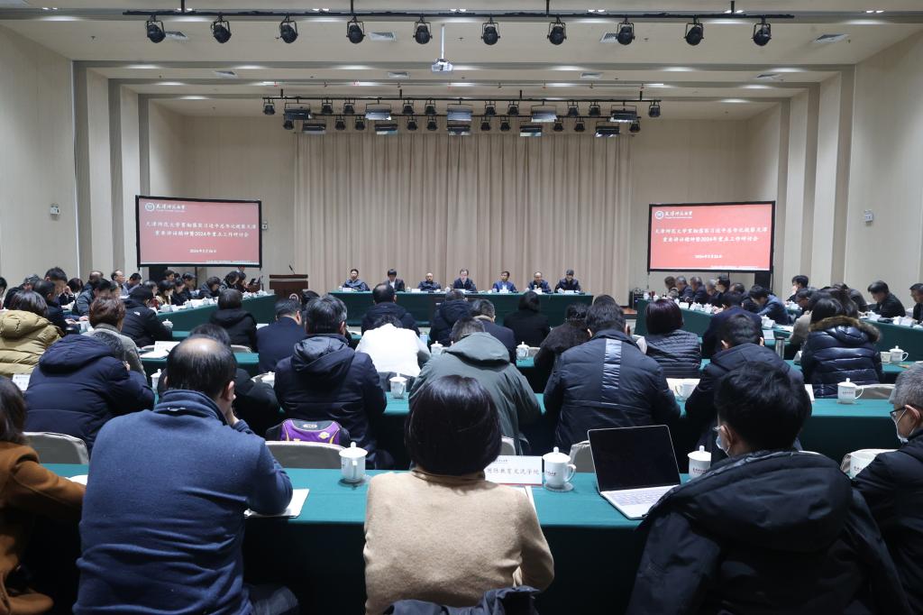 在学校贯彻落实习近平总书记视察天津重要讲话精神暨2024年重点工作研讨会上,校党委书记曲凯带领全体与会人员再次集体学习习近平总书记视察天津重要讲话精神,传达市委常委会扩大会议和全市领导干部会议精神,传达市委学习贯彻习近平总书记视察天津重要讲话精神专题研讨会暨市委理论学习中心组读书班精神,传达天津市推动京津冀协同发展走深走实工作会议精神。他提出,要把深入学习宣传贯彻习近平总书记视察天津重要讲话精神作为当前和今后一个时期的首要政治任务,迅速兴起学习宣传贯彻热潮。要深刻领会把握新时代新征程习近平总书记对天津工作的总体要求,深刻领会把握“四个善作善成”的重要要求,深刻领会把握关于巩固拓展主题教育成果、加强党的建设的重要要求,坚定捍卫“两个确立”,坚决做到“两个维护”,切实把习近平总书记的殷殷嘱托转化为推动学校高质量发展的强大动力和务实行动,为全面建设社会主义现代化大都市、奋力谱写中国式现代化天津篇章贡献师大力量、展现师大作为。