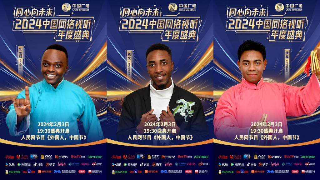 孔爱凯、唐磊、凯文三名同学自己创作了讲述中国故事、天津故事的天津快板、京东大鼓、相声和歌唱演唱节目,精彩亮相出演“同心向未来”2024中国网络视听年度盛典“外国人,中国节”节目。唐磊通过天津快板的形式介绍了天津地方特色文化和学习生活经历;孔爱凯创作了京东大鼓,讲述了自己在中国学习生活的经历并表达了对中国式现代化社会经济高质量发展的美好祝愿;凯文以中文说唱形式精彩演绎了歌曲演唱《团圆》,传递了对喜迎佳节、新春团圆的美好祝福。国际学生在中国网络春晚表演的节目视角独特、特色鲜明、亮眼吸睛、精彩纷呈,受到广大网民的热情称赞,节目点击率持续攀升。该节目相继在人民网、新华网、腾讯视频、抖音、微博等20多家主流媒体发布,并被翻译成多语种版本在全球范围展播。