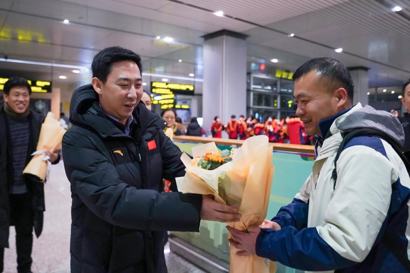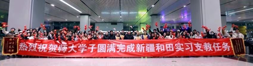 党委学工部消息(通讯员 杨晨2023年12月31日凌晨,我校2023年秋季学期援疆实习支教团60余名师生在圆满完成为期三个半月的实习支教任务后,从新疆和田地区载誉而归。校党委常委、副校长陈玳玮前往机场迎接实习支教学生,学校党委学生工作部、继续教育学院负责同志及相关工作人员随同迎接。