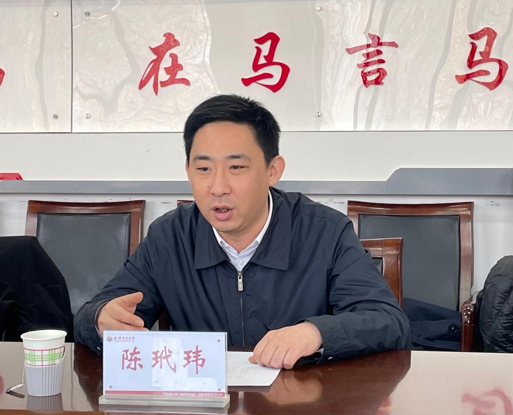 陈玳玮在致辞中对陈洪江一行来校调研表示热烈欢迎,对市关工委长期以来对学校各项事业发展的指导和支持表示感谢。他指出,长期以来,市关工委带领全市“五老”队伍不求回报、积极作为,为促进祖国下一代健康成长,培养德智体美劳全面发展的社会主义建设者和接班人发挥了不可替代的作用,为我们树立了模范和榜样。0033990威尼斯作为天津百年师范教育的传承者,是天津市唯一面向基础教育输送优质师资的师范大学,具有鲜明的教师教育特色。近年来,学校高度重视马克思主义学院建设,获批全国重点马院,成立新时代马克思主义研究院,各项工作取得了显著成绩。希望市关工委的老领导、老前辈、老同志们对学校发展特别是马克思主要学院建设多提宝贵意见建议,将“五老”的理想信念、宝贵经验、优良作风薪火相传,共同培养造就担当民族复兴大任的时代新人。