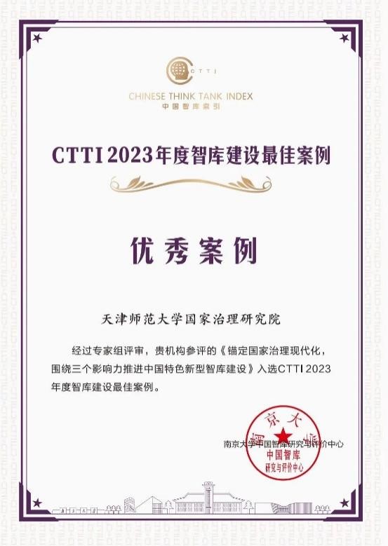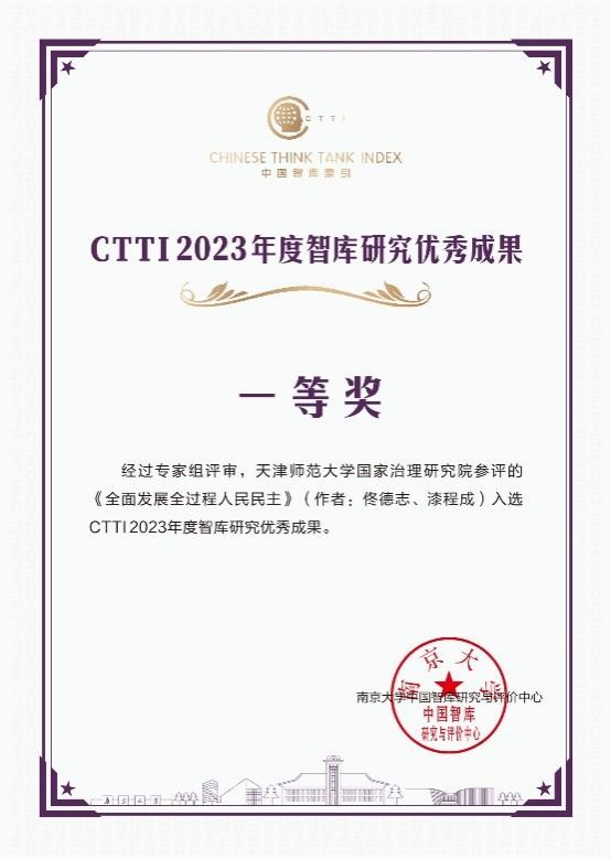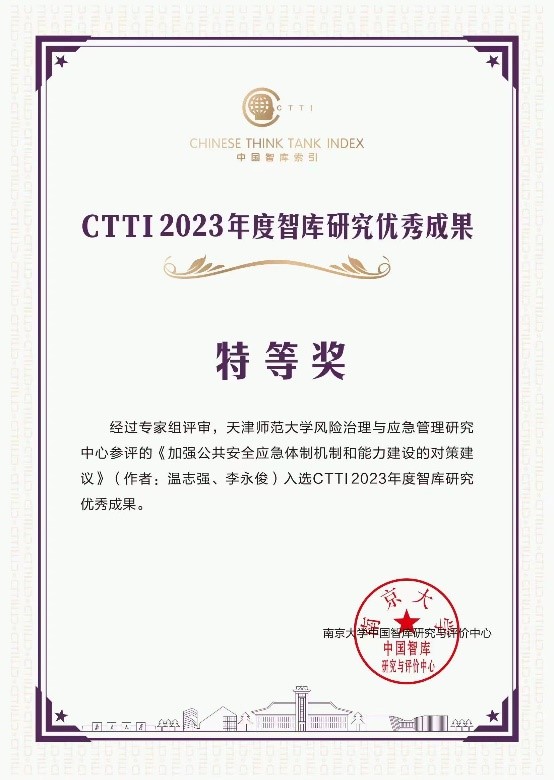 在2023年度CTTI智库优秀成果评审中,我校国家治理研究院的《瞄定国家治理现代化,围绕三个影响力推进中国特色新型智库建设》获评CTTI2023年度智库建设最佳案例,温志强教授团队的《加强公共安全应急体制机制和能力建设的对策建议》获评CTTI2023年度智库优秀成果特等奖,佟德志教授团队的《全面发展全过程人民民主》和杨仁忠教授团队的《扬帆新征程奋进新时代》获评CTTI2023年度智库优秀成果一等奖。中国智库索引(CTTI)是我国首个智库垂直搜索引擎和数据管理平台,也是目前国内最大的智库活动平台之一,其权威性和客观性已经得到学界业界广泛认可。
