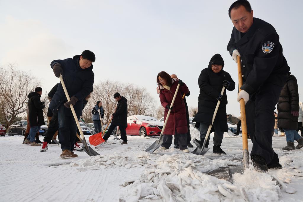 据介绍,学校后勤管理处在降雪开始不久便组织工作人员投入到融雪除雪工作中,对校园主干道路和学生生活区人员主要通行区域施撒融雪剂,对各楼宇台阶上的积雪进行清理并在门口铺设防滑垫。14日雪量加大,后勤员工顶风冒雪在全校范围进行清融雪工作;15日,精武镇环卫部门派铲车对学校主干道积雪进行清理,校园物业部工作人员及时将原有和新购置的300余把铁锨和200余把除雪铲送至集中地点,供师生除雪使用。目前,后勤员工和精武镇环卫清雪车辆还在校园内各通行道路进行清融雪作业,各条道路已基本疏通,收尾工作仍在有序进行中。