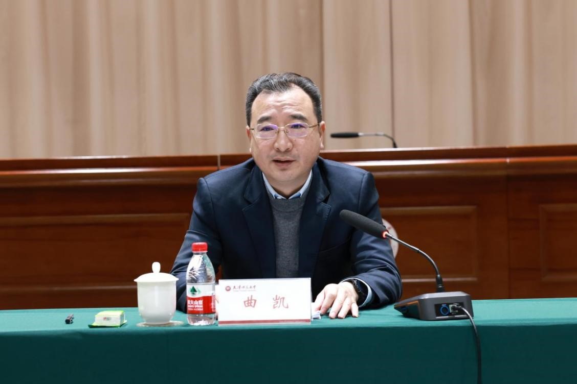 曲凯在讲话中指出,长期以来,习近平总书记始终关心青年成长成才,多次通过座谈等方式与青年互动,言之谆谆、期望殷殷,激励着广大青年不负时代、不负韶华,在青春的赛道上奋力奔跑。党的二十大擘画了全面建设社会主义现代化国家、以中国式现代化全面推进中华民族伟大复兴的宏伟蓝图。同学们求学的城市——天津正在全面贯彻党的二十大精神,认真落实习近平总书记对天津工作的重要指示要求,深入实施“十项行动”,全面建设高质量发展、高水平改革开放、高效能治理、高品质生活的社会主义现代化大都市。师范大学的学生作为新时代青年,要抓住人生中最宝贵的大学时光,秉承“勤奋严谨、自树树人”校训,坚定不移听党话、跟党走,努力成长为担当民族复兴大任的时代新人。