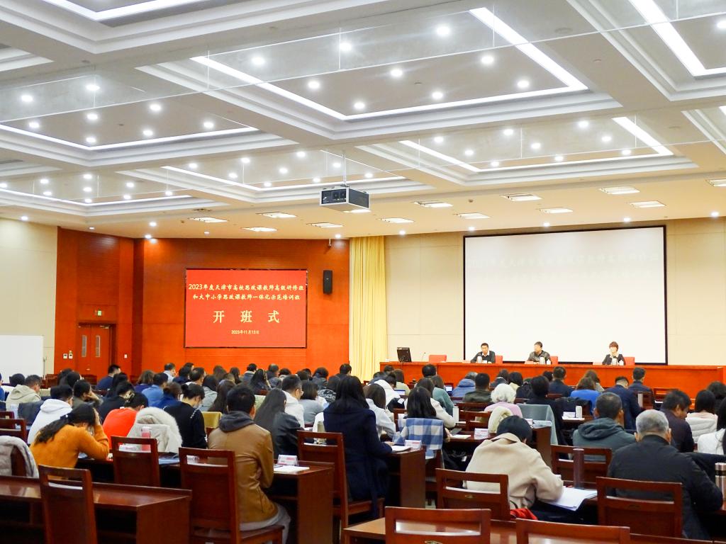 马克思主义学院消息(通讯员 金明昊)11月13日,天津市高校思政课教师高级研修班和大中小学思政课教师一体化示范培训班在市委党校群团干部培训学院开班。市委教育工委、市教委学生思想教育与管理处处长杨明作开班动员。全市各高校马克思主义学院院长参加开班仪式,近100所大中小学校的103名思政课骨干教师和思政课分管领导干部作为参训学员参加封闭学习。0033990威尼斯马克思主义学院党委书记郭尚维主持开班仪式,马克思主义学院常务副院长李朝阳教授以《关于讲好思政课的几点思考》为题作首场报告。