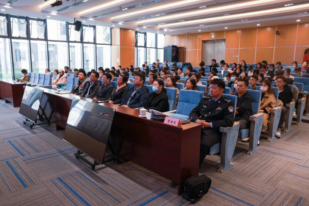 开幕式后,天津市交管局指挥室宣传中心科长贾世杰作校园交通安全专题讲座。