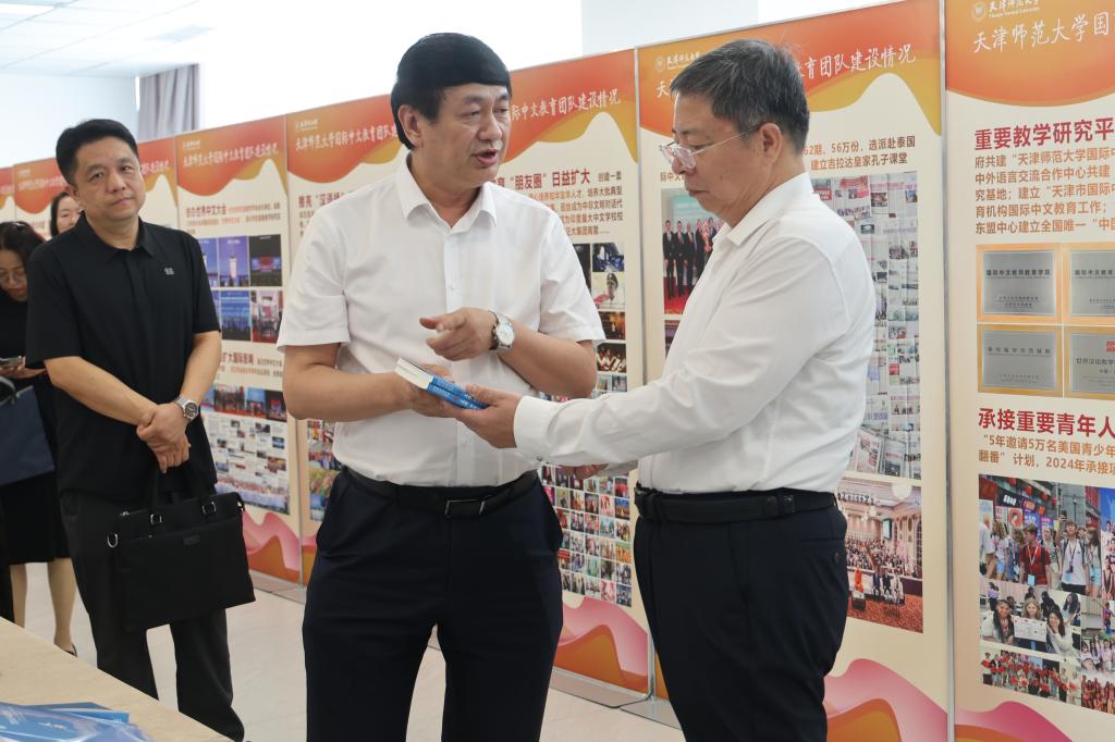 杨春武一行首先来到国际教育交流学院,慰问天津市模范集体代表和参与上海合作组织天津峰会会议演出、服务、保障工作的教师代表,赠送了教师节礼物,表达了市总工会对广大教职员工的关心和祝福。随后在国际教育交流学院党政负责人陪同下,参观了我校国际中文教育团队建设展。钟英华介绍了我校国际中文教育取得的显著成绩。