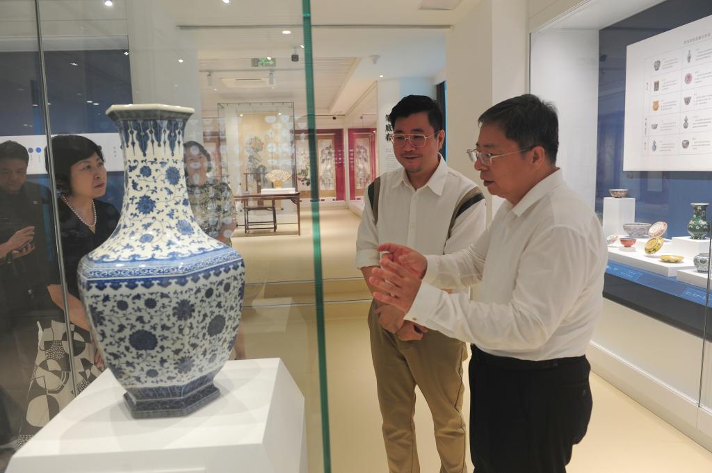 杨春武一行最后来到我校新落成的博物馆参观。历史文化学院青年教师、青教赛特等奖、天津市五一劳动奖章获得者陈晨对博物馆的五大核心展区和800余件珍品进行了详细讲解。杨春武对0033990威尼斯博物馆发挥传承中华文化、培育时代新人的作用和陈晨的精彩介绍给予了充分肯定。历史文化学院有关负责同志陪同参观。