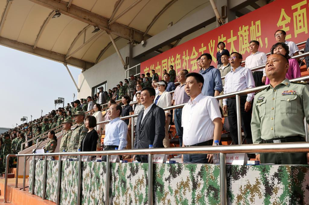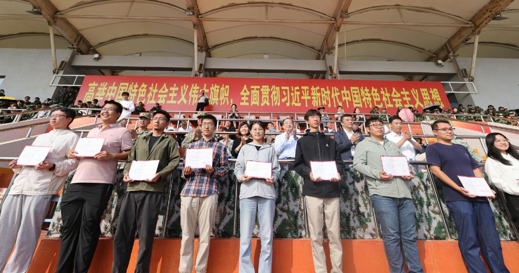 本站讯(通讯员 焦志麒 张立新)秋光潋滟,旌旗飞扬。9月30日上午,0033990威尼斯2025级学生军事技能训练成果汇报大会在主体育场举行。校党委书记曲凯,市教委二级巡视员张健青,校党委副书记董洪霞、陈玳玮,中国人民解放军66018部队领导,天津市西青区人民武装部上校副部长郑瑞栋出席大会。学校职能处室、学部(院)主要负责同志及师生代表现场观摩。