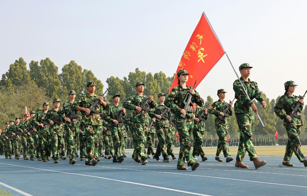 军训团各营连依次进行分列式展示,新生们迈着铿锵有力的步伐,以整齐划一的队列、饱满昂扬的姿态依次通过主席台,全面展示军事训练成果,彰显师大学子良好的精神风貌。