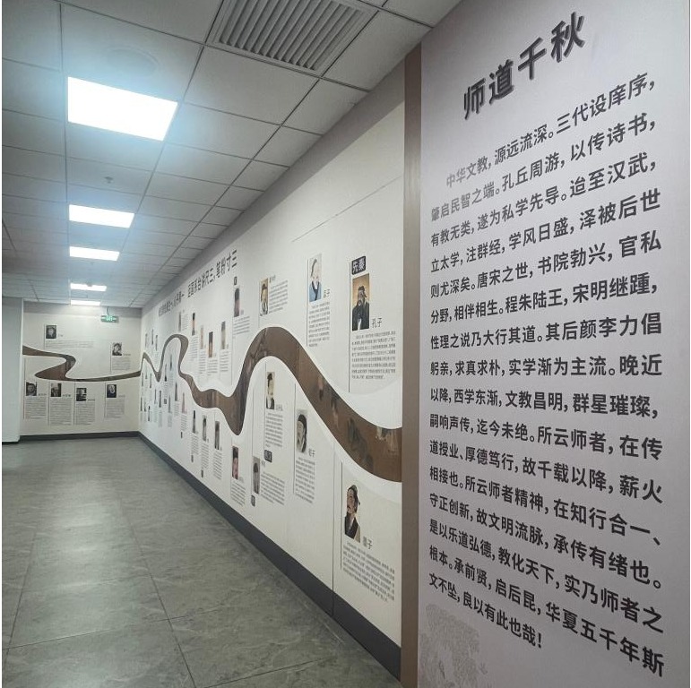 中心综合运用现代信息化技术,融合墙体展示、多媒体影像系统、声光效果于一体,着力打造沉浸式、互动性的实践浸润与思想教育阵地。中心系统展示了党的十八大以来习近平总书记关于教育的重要论述和教育家精神的生成逻辑、核心要义与时代价值,详实记录了中华文明赓续发展的伟大征程中,一代代教育家传承发展厚重师道文化、为国家教育事业奉献毕生心血的光辉历程与师者丰碑,生动呈现了天津市在弘扬教育家精神方面的积极作为与显著成效,搭建了教育家精神全方位展示数据库平台。