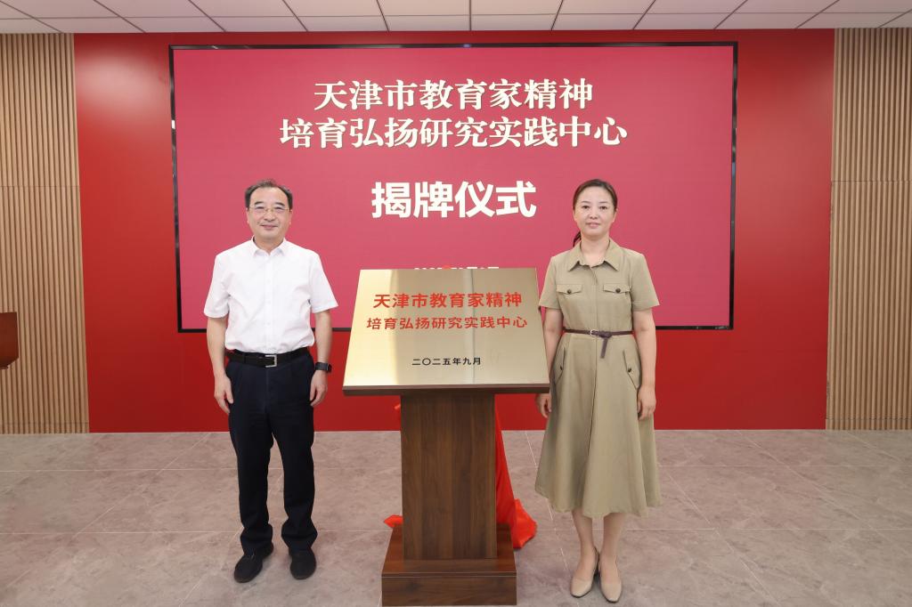 为深入贯彻落实习近平总书记关于大力弘扬教育家精神的重要指示批示精神,按照《中共中央 国务院关于弘扬教育家精神加强新时代高素质专业化教师队伍建设的意见》部署,天津市教育家精神培育弘扬研究实践中心(以下简称“中心”)于2025年9月9日在我校揭牌落成。