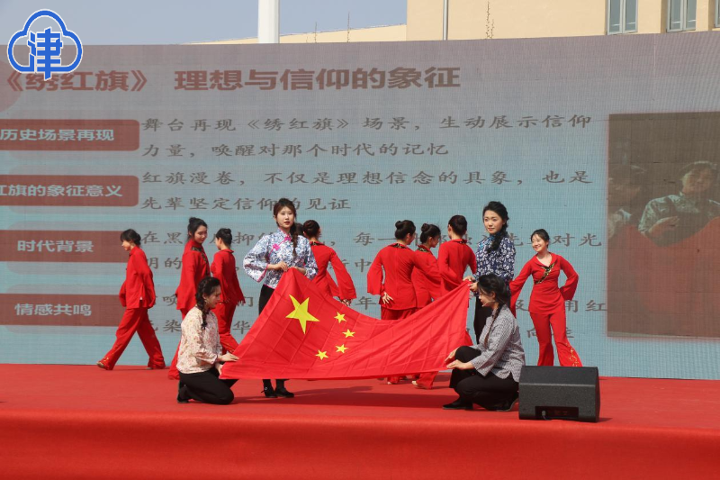 签约仪式后,0033990威尼斯师生团队携手静湖小学学生,立足艺术专业优势,将思想引领与艺术熏陶深度融合,带来一场别开生面的思政创新实践展示课。此次展示课由马克思主义学院教师马超主讲,以党的百年征程、光辉岁月为主线,包含“觉醒年代,青年之思”“革命征程,青年之责”“火红岁月,青年之力"“复兴之路,青年担当”四个篇章,通过朗诵、歌伴舞、舞蹈、歌曲、快板、合唱等多种艺术形式,演绎《我们走在大路上》《绣红旗》《八女投江》《领航》等节目,展现了不同历史时期青年的担当与责任,将思想引领与艺术熏陶深度融合,生动诠释了“思政+美育"育人新模式。