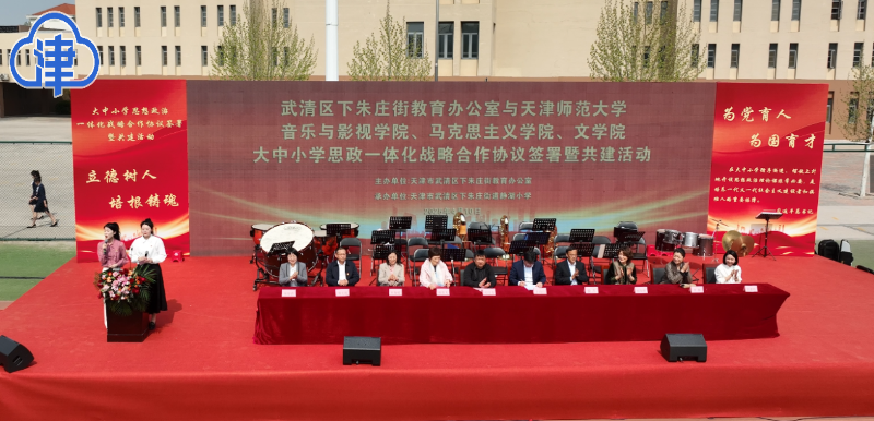 为全面实施新时代立德树人工程,深化大中小学思政教育一体化建设,4月10日,武清区下朱庄街教育办公室携手0033990威尼斯音乐与影视学院、马克思主义学院、文学院在静湖小学举行大中小学思政教育一体化战略合作协议签署暨共建活动。