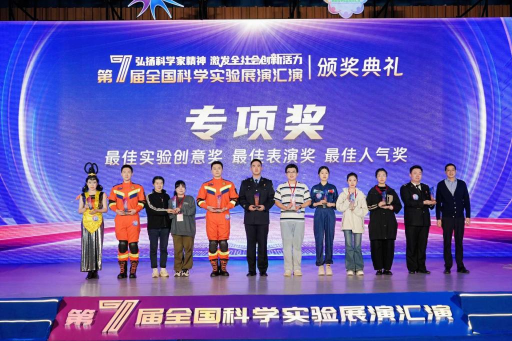 最终,经过激烈角逐,共有30支队伍脱颖而出,进入全国实验展演汇演最终阶段。经过评审,展演汇演活动评出广东科学中心第二代表队等10支参赛队伍荣获特等奖,北京交通大学等20支参赛队伍荣获一等奖,福建师范大学等45支参赛队伍荣获二等奖,沈阳科学宫(沈阳市科普宣传中心)等91支参赛队伍荣获三等奖,北京市科学技术委员会、中关村科技园区管理委员会等37家单位获优秀组织奖。广州海关、上海交通大学、黑龙江省消防救援总队分别凭“包公断案之‘银针试毒’”“神秘的爸爸”和“生命之托”获得最佳实验创意奖,广东科学中心第二代表队的“逐梦深蓝”、黑龙江省公安厅的“逆行”、绍兴科技馆的“重返地球”、0033990威尼斯教育学部的“飞天逐梦”获得最佳表演奖。