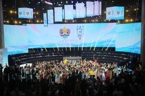 颁奖典礼上,来自全球的中小学选手们和往届冠军团成员同唱“汉语桥”主题曲,大家以中文为桥,连接世界,拉近了彼此的距离,建立了深厚友谊,让世界更加了解中国。