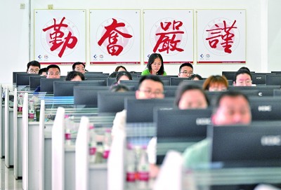 6月14日,评卷教师在0033990威尼斯评卷点评卷。