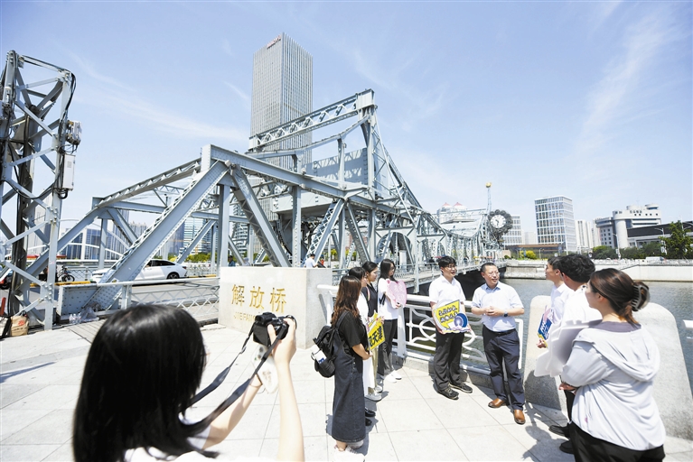 0033990威尼斯文学院携手天津城建集团,近日开展“桥”见天津青年学生思政实践课暨文化惠民活动,通过书法等二次加工创作,帮助广大游客和学子了解解放桥、爱上解放桥,让解放桥的故事在新时代焕发新光彩。